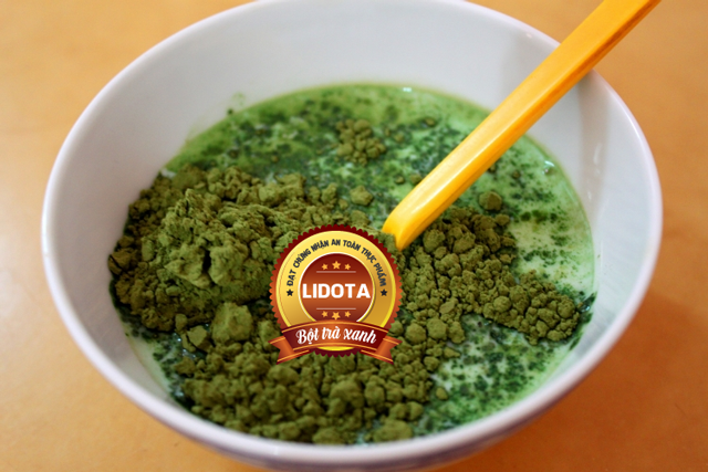 Hòa tan bột trà xanh cùng với gel lô hội, sau đó cho vitamin E hoặc mật ong vào và trộn đều hỗn hợp.