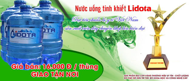 Thương hiệu nước uống sạch thương hiệu LIDOTA là một trong những thương hiệu uy tín , đã được cấp chứng nhận “ĐẠT TIÊU CHUẨN Ý TẾ VIỆT NAM” – “ĐƯỢC SẢN XUẤT THEO DÂY TRUYỀN KHÉP KÍN HIỆN ĐẠI“