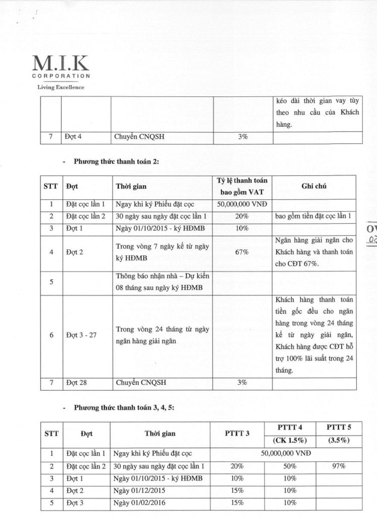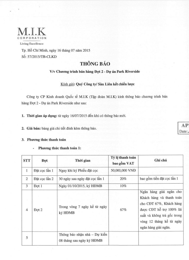 PHƯƠNG THỨC THANH TOÁN CỦA PARK RIVERSIDE LÀ KHÁ TỐT